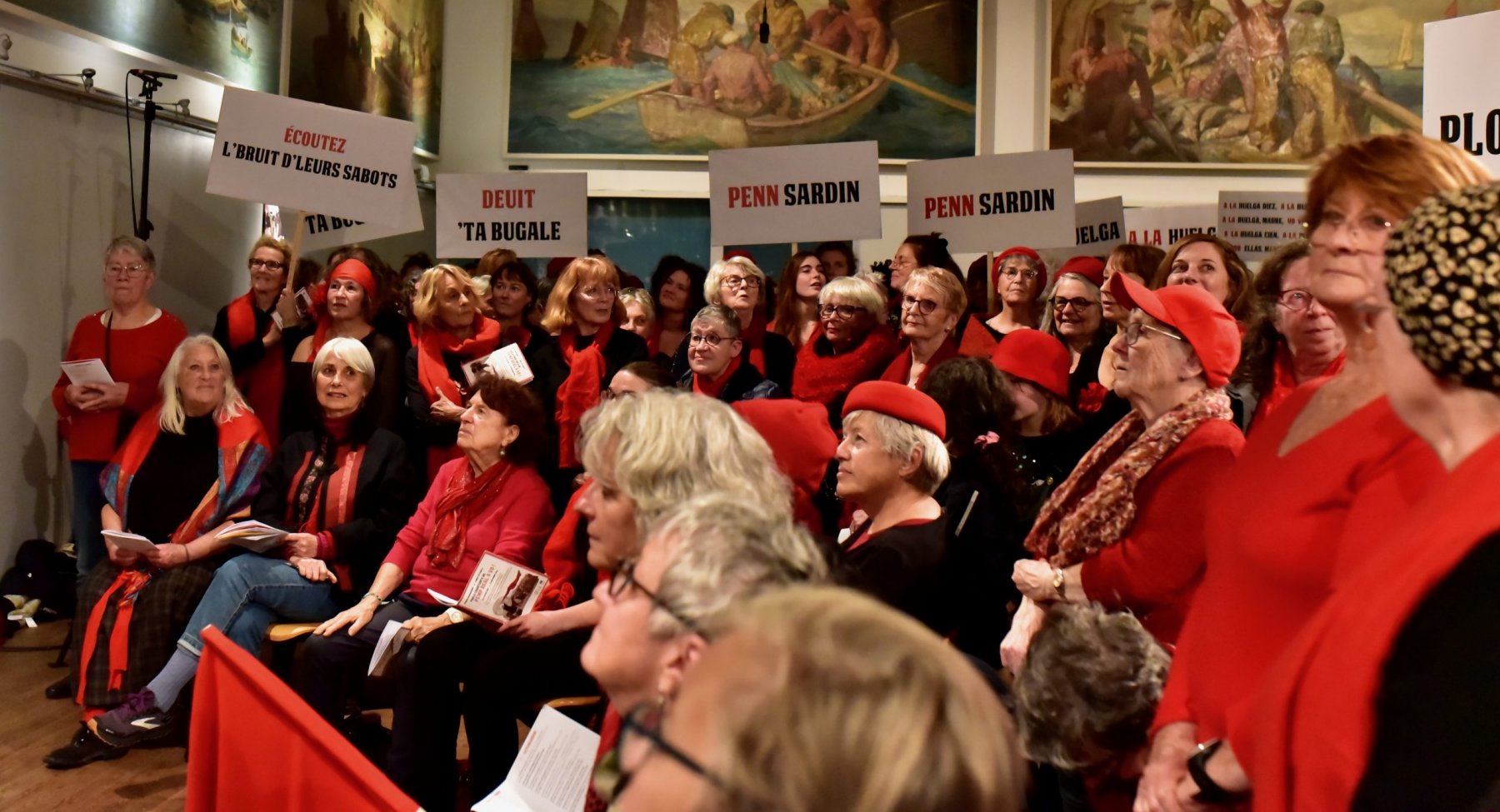 moins de 3 mois, de réunir 300 choristes pour chanter les chants des sardinières et autres chants douarnenistes ! Manon Hamard, cheffe de chœur de la Compagnie Dicilà l’a relevé; dépassant même l’objectif, puisque le 23 novembre 2024 ce sont 500 choristes qui se sont produits au centre de la ville (la météo capricieuse ne permettant pas de se produire sur le port du Rosmeur, comme initialement prévu).